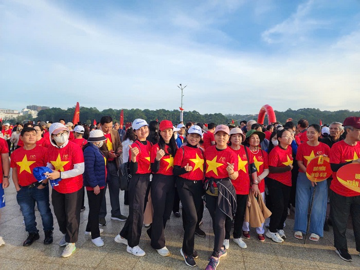 Lan tỏa thông điệp sống khỏe và kết nối. Trong ảnh, CEO Trần Thị Tính - Tinh Hoa Việt (mũ hồng, bìa phải, hàng thứ nhất)