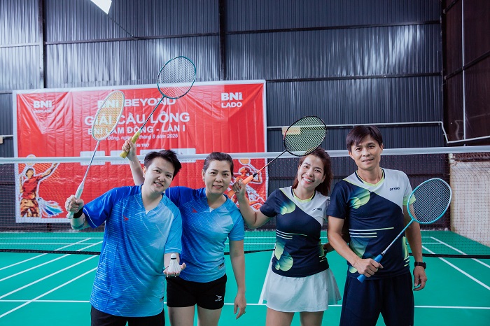 CEO Trần Thị Tính - Công ty TNHH TM&DV Tinh Hoa Việt (bìa trái) tham gia Giải cầu lông BNI Lâm Đồng - lần I, năm 2025