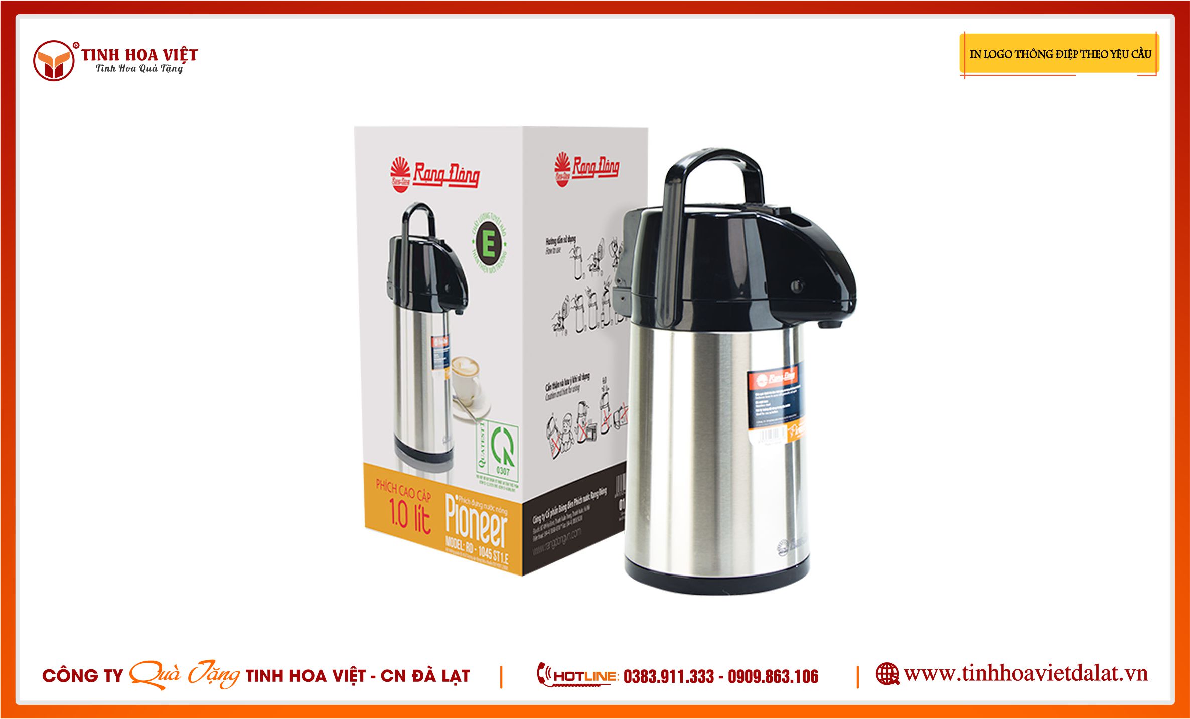 In logo, nội dung lên phích nước Rạng Đông làm quà tặng