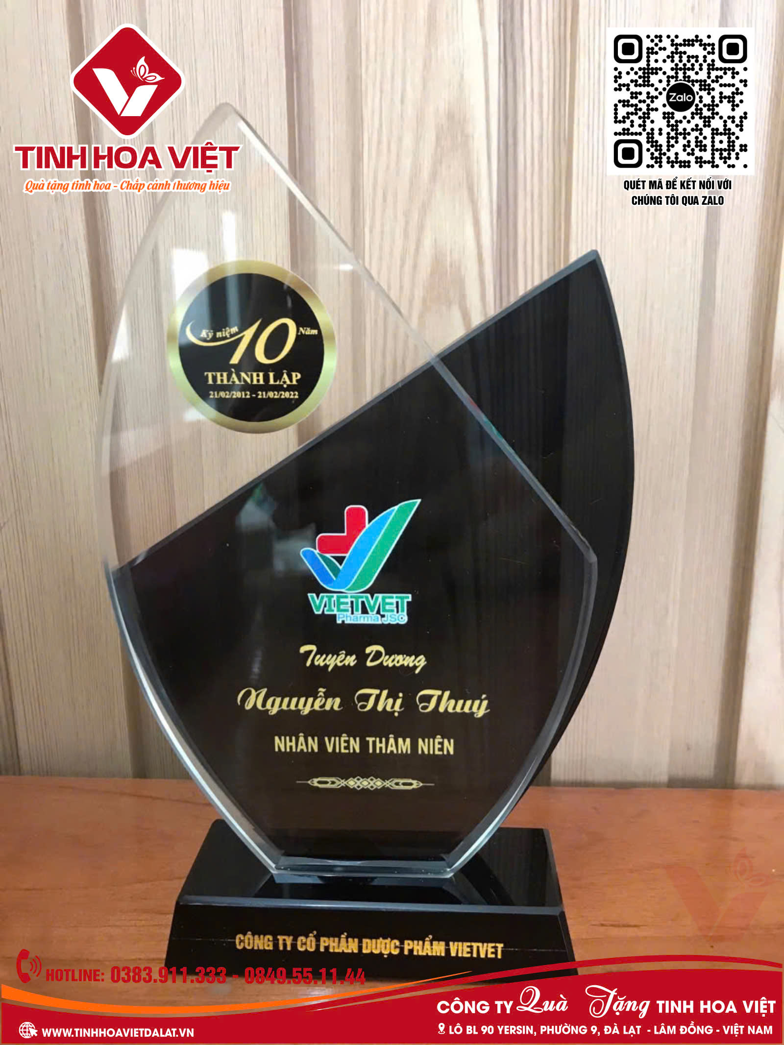 Tinh Hoa Việt tự hào là đơn vị uy tín cung cấp cúp biểu trưng, cùng nhiều loại quà tặng đa dạng, phục vụ nhu cầu của quý khách hàng là doanh nghiệp, cơ quan, hội đoàn thể, đại hội… Hãy nhanh tay liên hệ để được tư vấn, hỗ trợ sản phẩm chất lượng với giá cả phải chăng, cùng nhiều chính sách đãi ngộ hấp dẫn.