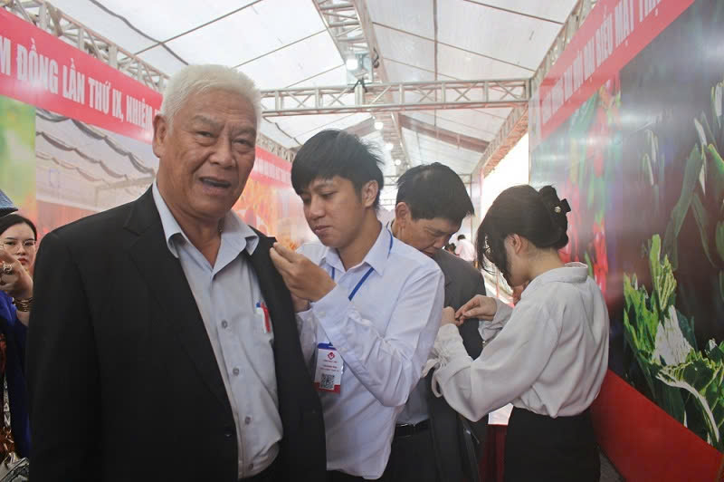Tặng biểu trưng Mặt trận Tổ quốc Việt Nam cho các đại biểu tham dự đại hội.