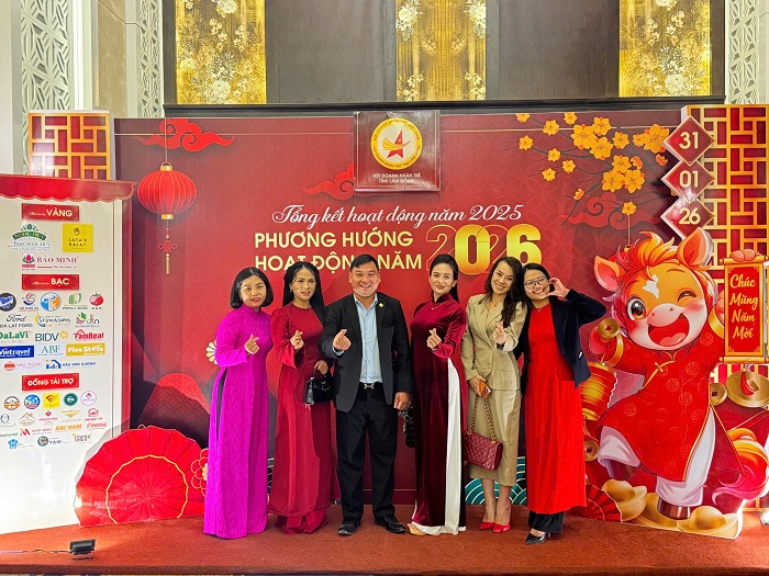 CEO Trần Thị Tính - Tinh Hoa Việt (bìa trái) dự chương trình Tổng kết hoạt động năm 2025 và phương hướng hoạt động năm 2026 của Hội Doanh nhân trẻ Lâm Đồng