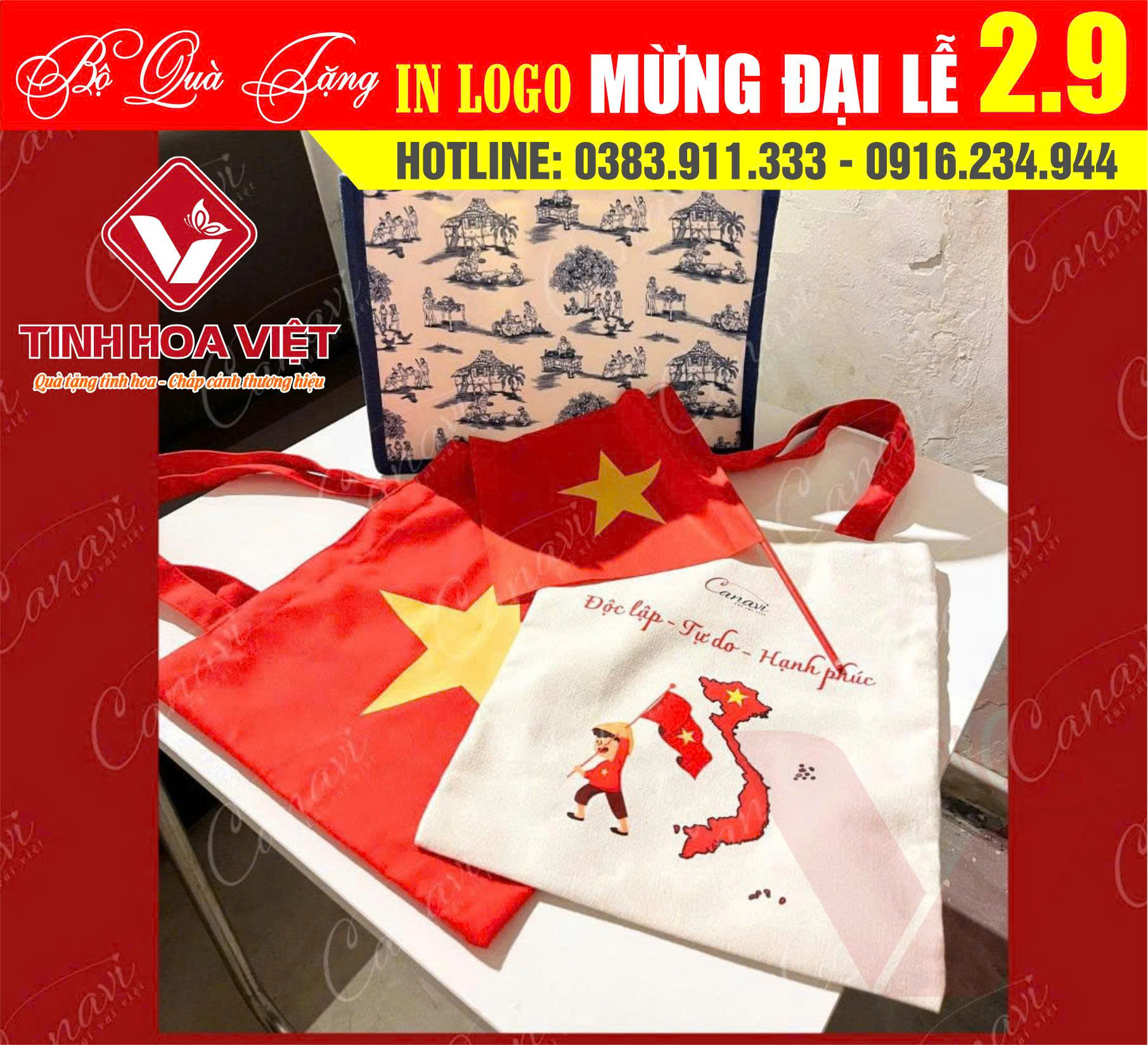 Nhân dịp Quốc khánh 2/9, Tinh Hoa Việt giới thiệu bộ sưu tập túi canvas đa dạng mẫu mã, có thể đặt in logo, slogan hoặc hình ảnh riêng. Điều này giúp doanh nghiệp vừa tri ân khách hàng, vừa tạo nên dấu ấn thương hiệu trong lòng người nhận.